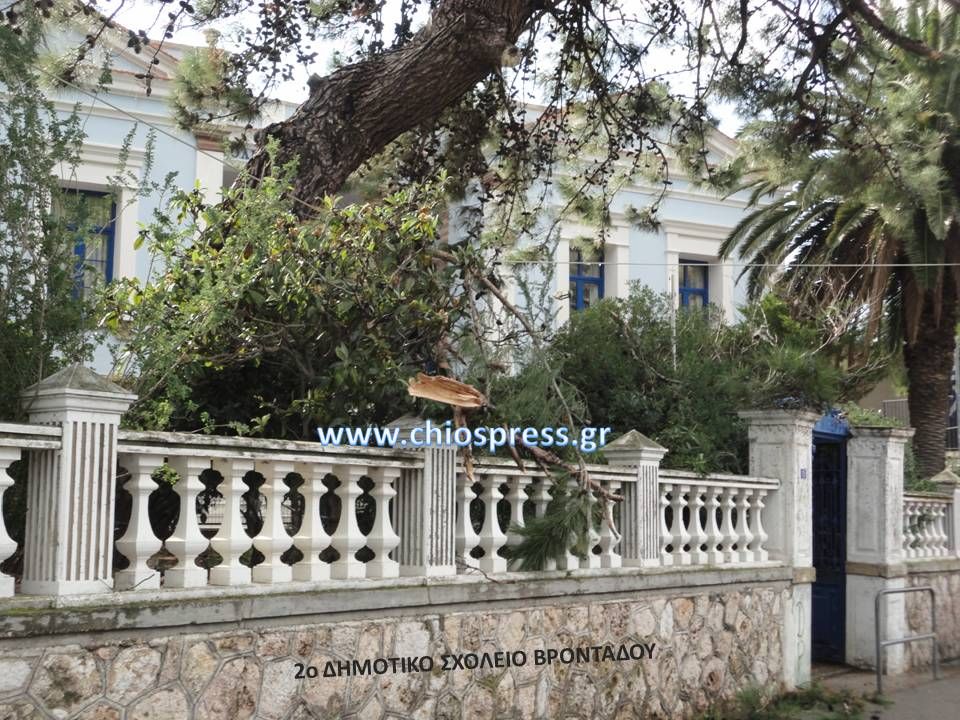 Πολλά προβλήματα έχουν προκύψει από το πρωί όποτε και έχει ο καιρός επιδεινωθεί με τον αέρα κατά διαστήματα να είναι αρκετά δυνατός και να σπάει δέντρα και να προκαλεί ζημιές.Συγκεκριμένα από το πρωί σε αρκετές περιπτώσεις έχει σπάσει κλαδιά δέντρων, με τα προβλήματα να εντοπίζονται περισσότερο στην περιοχή των Λιβαδίων και του Βροντάδου, όπου στο Βροντάδο μεγάλα κλαδιά έπεσαν στο δρόμο στην περιοχή της Ερειθιανής, καθώς και μέσα στο 2ο Δημοτικό Σχολείο Βροντάδου, ευτυχώς την ώρα που γινόταν μάθημα και δεν υπήρχαν μαθητές στην αυλή του σχολείου, επίσης στον Βελονά στο Βροντάδο, κλαδί που έπεσε έσπασε παρμπρίζ αυτοκινήτου, ενώ και στη Κλειδού έπεσαν αρκετά κλαδιά, ακόμη και στο σχολείο (1ο Δημοτικό Βροντάδου) και εκεί όμως δεν αναφέρθηκαν τραυματισμοί. Στα Λιβάδια πέρα από τα κλαδιά που έσπασε ο άερας, ξήλωσε και τη μεταλική (πάνελ) σκεπή του Βούρειου Κλειστού Σταδίου Λιβαδίων. Επίσης ένα μεγάλο κλαδί έσπασε και έκλεισε την είσοδο του 1ου - 3ού Ενιαίου Λυκείου στο Χριστό με την Πυροσβεστική να σπεύδει στο σημείο και να ανοίγει την είσοδο σχεδόν αμέσως, ενώ κλαδιά έσπασαν στο Γεωργικό Συνεταιρισμό, στο Χαλκειό, αλλά και σε άλλες περιοχές του νησιού με την Πυροσβεστική να επεμβαίνει και πάλι αποτελεσματικά. Τέλος βράχια έπεσαν στον δρόμο στον Ανέμωνα.