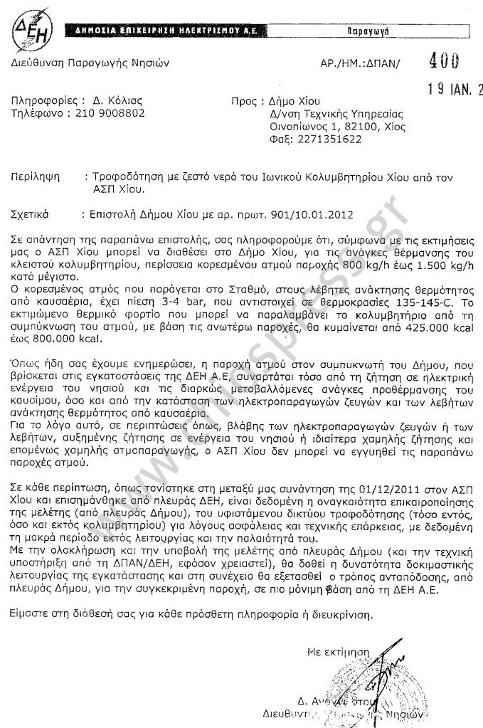 Η απάντηση της ΔΕΗ στη πρόταση του Δήμου Χίου:
